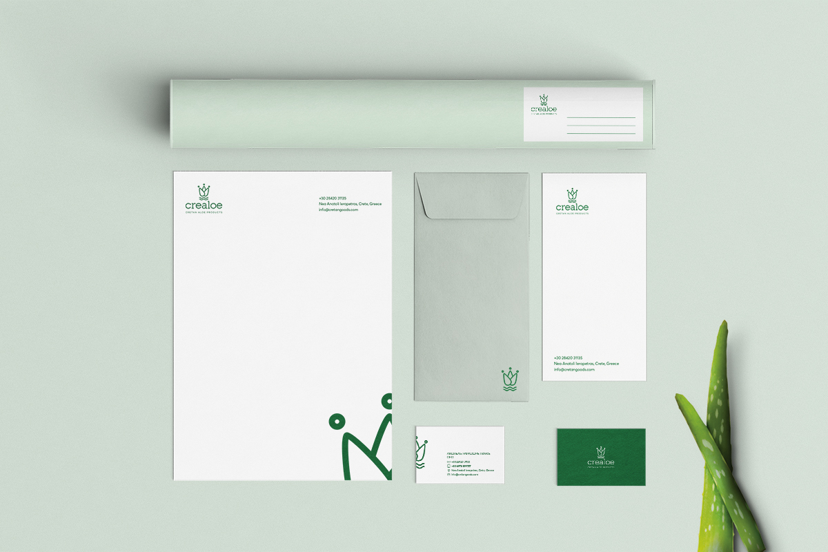 Σχεδιασμός λογοτύπου για την εταιρία Crealoe. Η λέξη Crealoe προήλθε απο τις λέξεις Cre (Cres: Κρής ο πρώτος βασιλιάς της Κρήτης από όπου πήρε και το όνομά της) και aloe από το φυτό Aloe Vera όπου είναι και η πρώτη ύλη των προϊόντων που παράγει. Το λογότυπο προέκυψε από την σύμπτυξη των παραπάνω στοιχείων δημιουργώντας ένα σύμβολο που έχει να διηγηθεί μια ιστορία πολλών ετών.