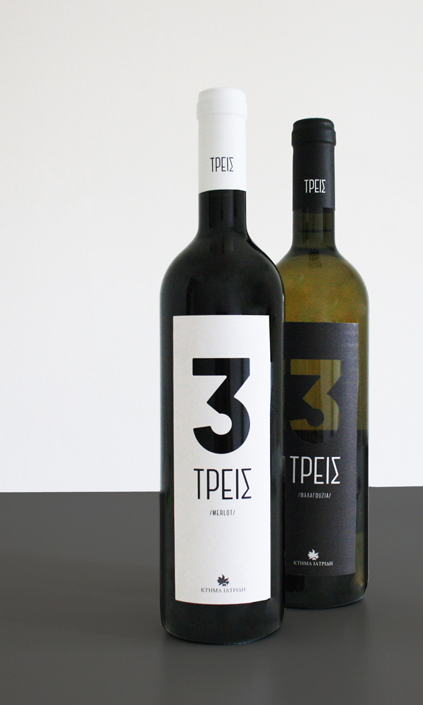 Το κτήμα Ιατρίδης είναι ένα νέο οινοποιείο με τρεις νέους οινολόγους στο Λάκωμα Χαλκιδικής. Νεανική σειρά σχεδιασμού ημίγλυκου οίνου με τον τίτλο TREIS (3). Με γνώμονα το κοινό καθώς και τα σημεία διανομής (εστιατόρια – μπαρ) δημιουργήσαμε μια ετικέτα με βασικό στοιχείο το μίνιμαλ διάτρητο 3.