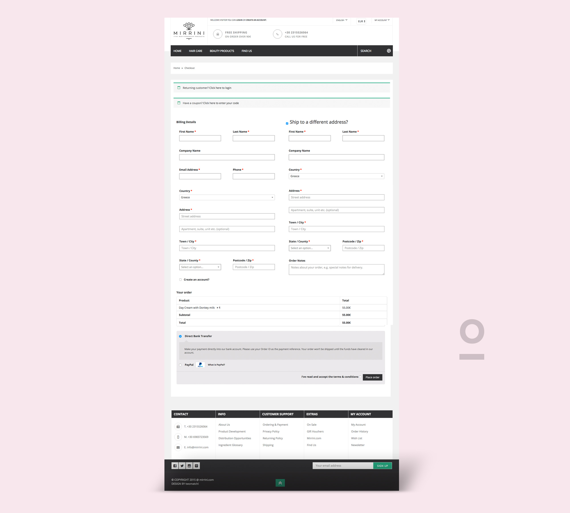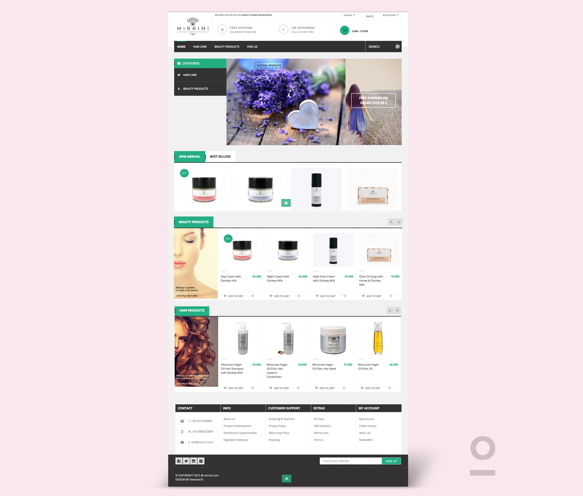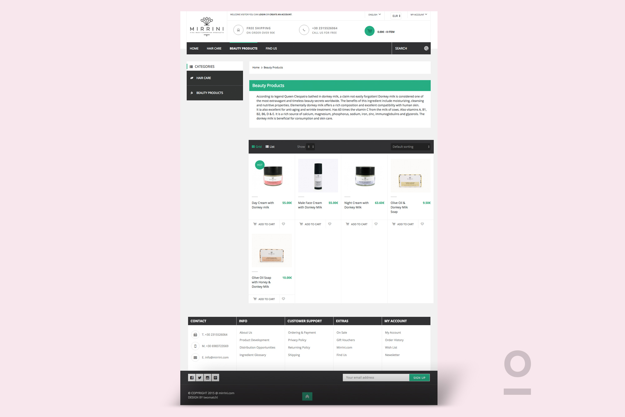 Bilingual eshop design for Mirrini, beauty products company. Products display, shopping cart, related products and easy-to-use administration interface.