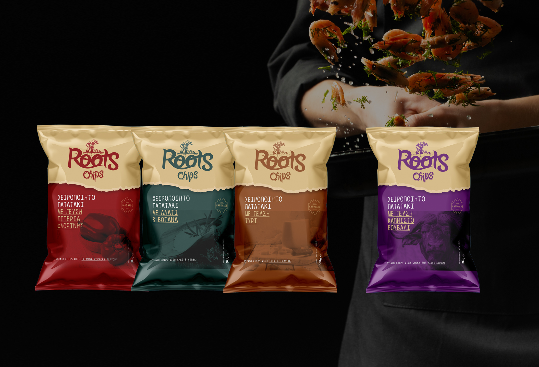 ROOTS is a brand that was created with a lot of love and passion from Greek products. The roots are the values on which family and entrepreneurship are based and roots give the basic material of the company, the potato. The handmade process of production and the selected flavors give a gastronomic approach to the potato chips.