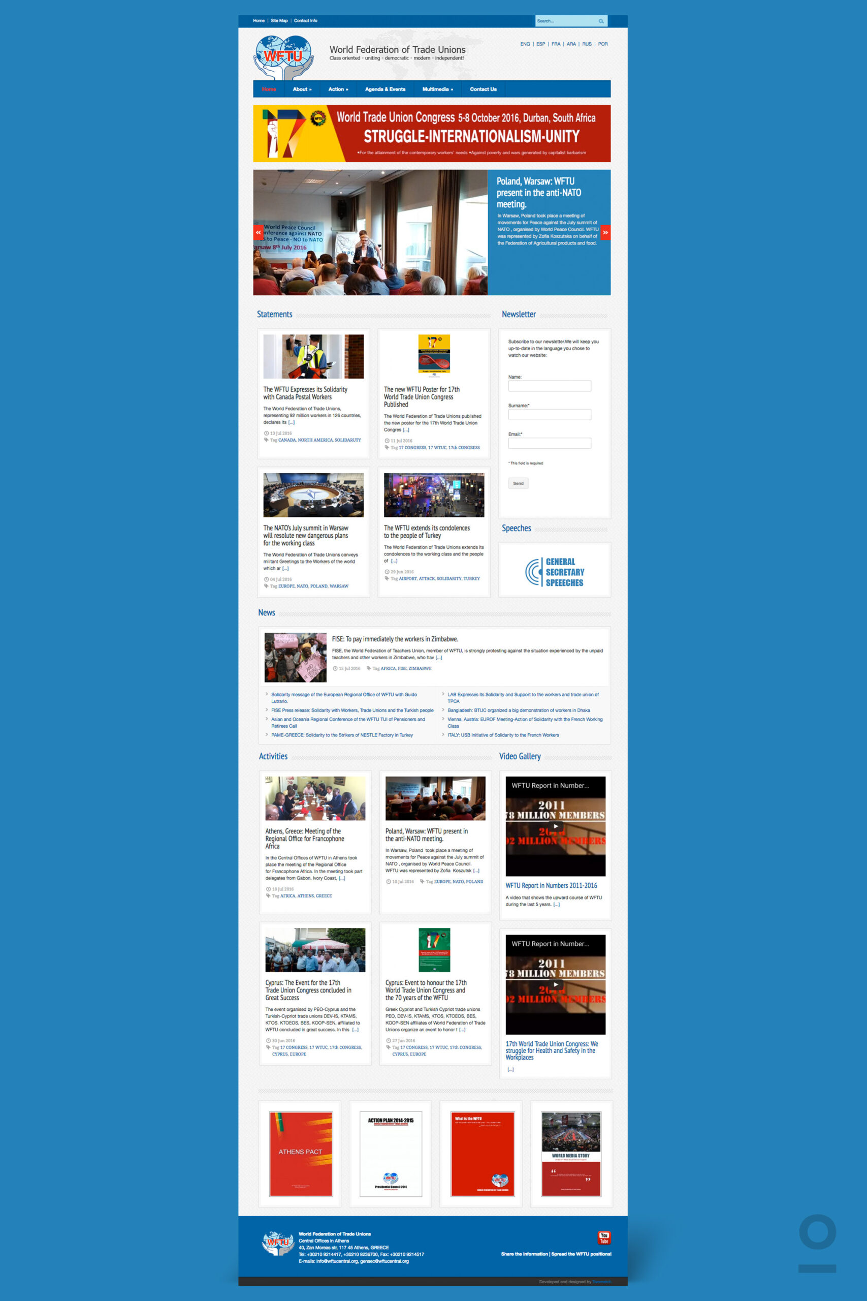 Design of informative website for wftu (world federation of trade unions). A multifunctional website in 6 languages, with a wide range of informative material, articles, photos, videos, podcast gallery and agenda.
